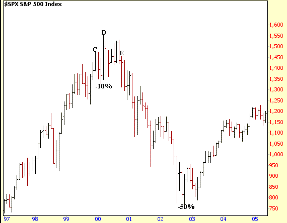 10%. However the S&P 500 was able to rebound and make a higher high by March of 2000