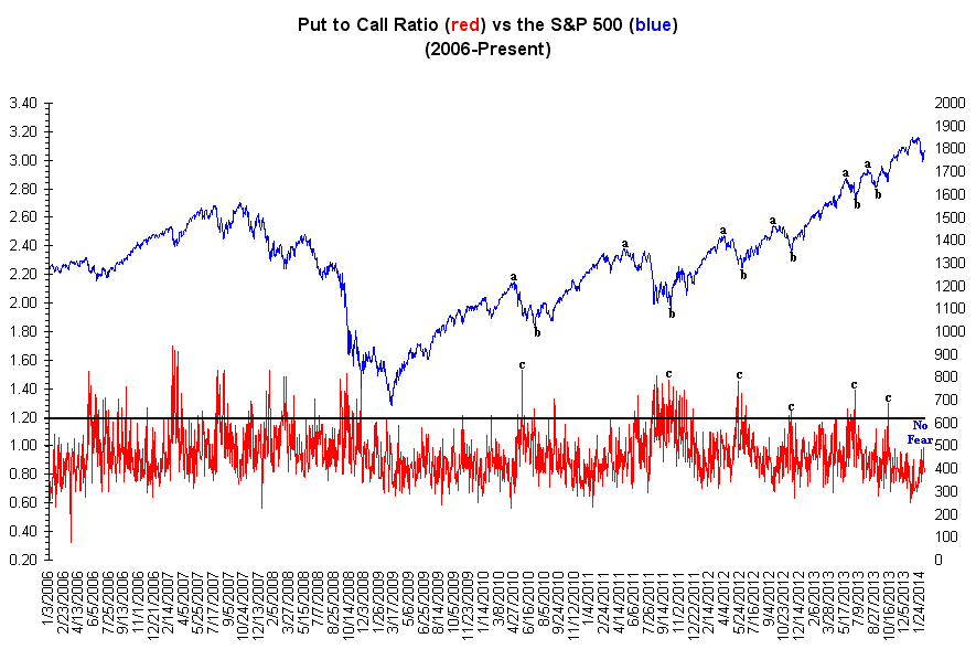 the past few years (points a to b) the Put to Call Ratio rose above the 1.20