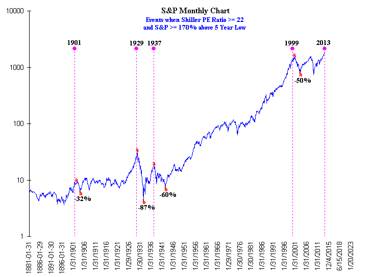 let's look at those events when the Shiller PE Ratio was >= 22 while at the