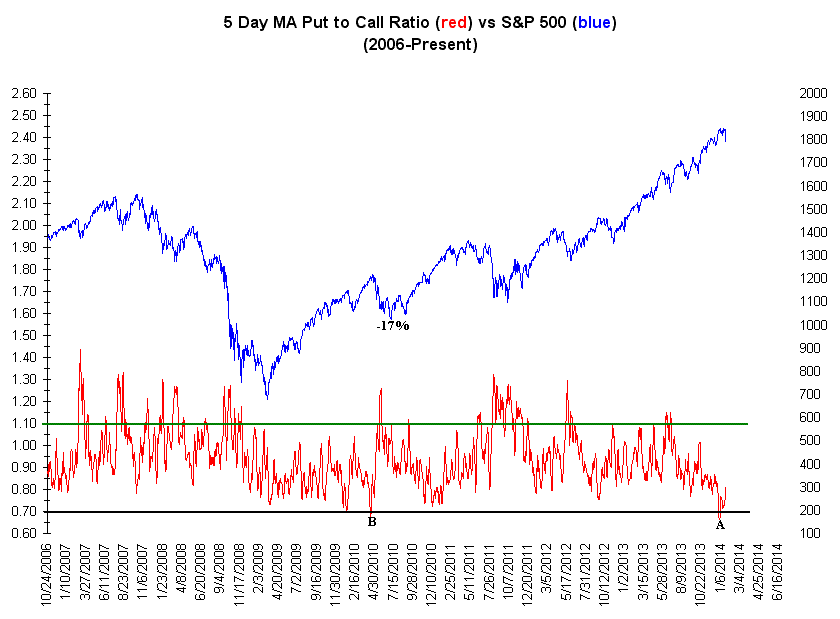 decades. Meanwhile the 5 Day Average of the Put to Call Ratio had