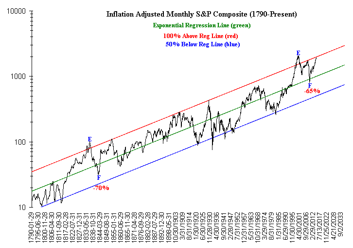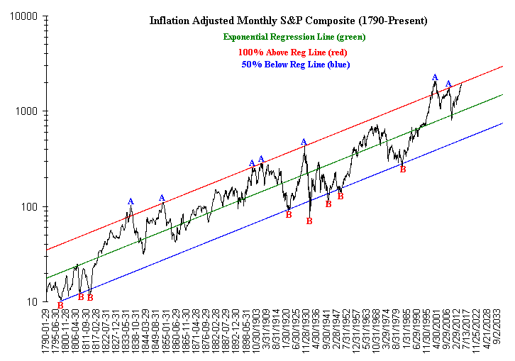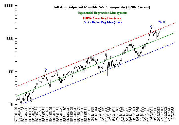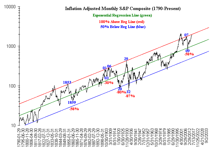 as shown by the chart below which is the Inflation Adjusted Monthly S&P Composite since 1790. In addition I have added the exponential