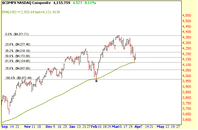 is along its 100 Day EMA (green line) and 61.8% Retrace from its last leg
